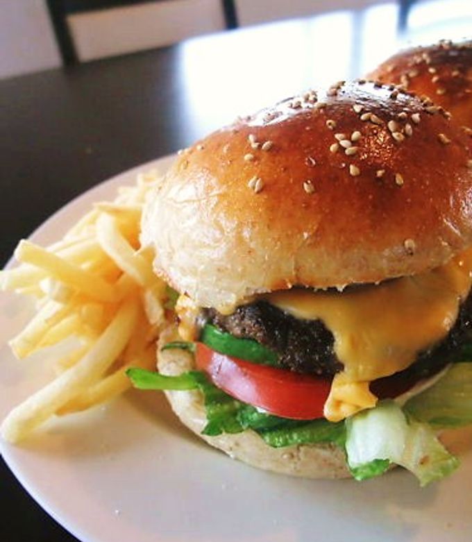 お肉100%のパティで作る贅沢ハンバーガー☆。