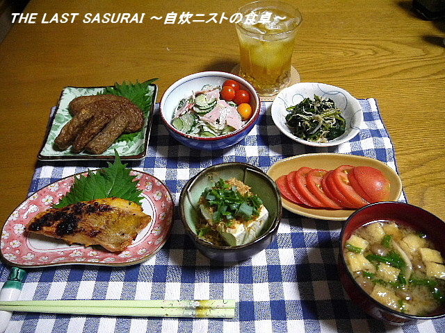 夕食 赤魚味噌漬け・スパサラ・ほうれん草じゃこ和え: THE LAST SASURAI ~自炊ニストの食卓~。