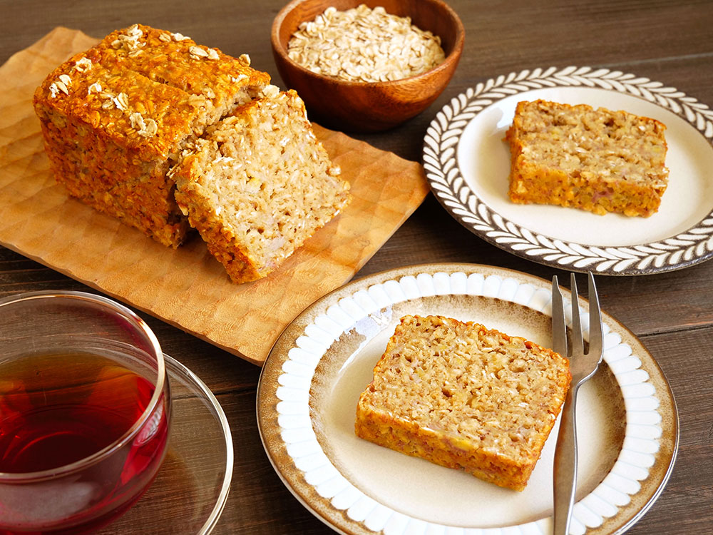 食物繊維たっぷり!オートミールのバナナパウンドケーキ。