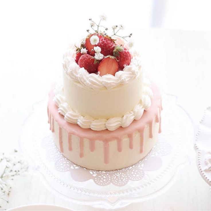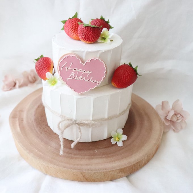 Bake&Deco - 2段ケーキ いちごのショートケーキ ご注文いただきありがとうございました お誕生日おめでとうございます☺︎2段ケーキショートケーキデザインケーキいちごのショートケーキオーダーケーキお誕生日ケーキバースデーケーキセンイルケーキ。