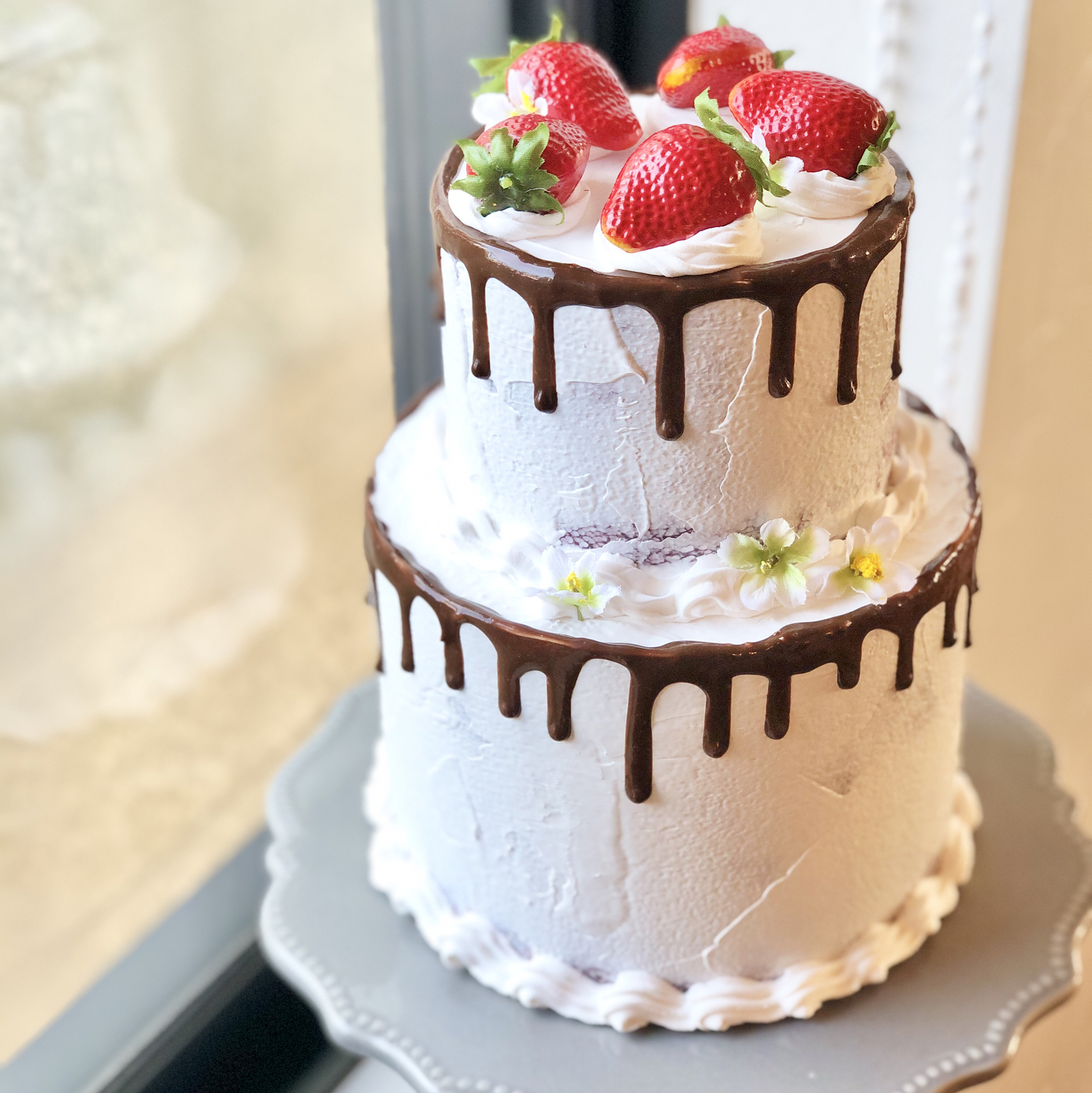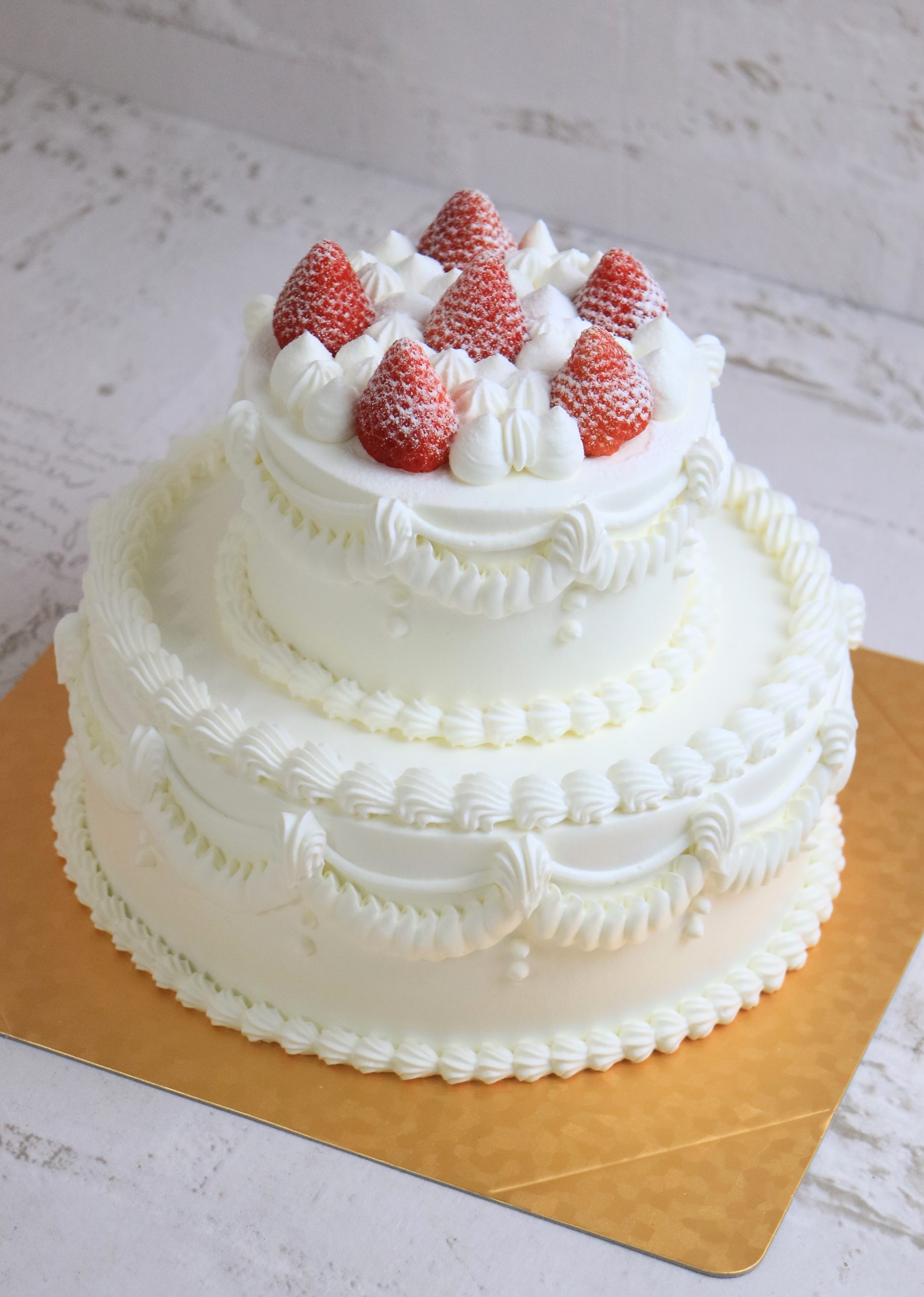 2段のデコレーションケーキ。