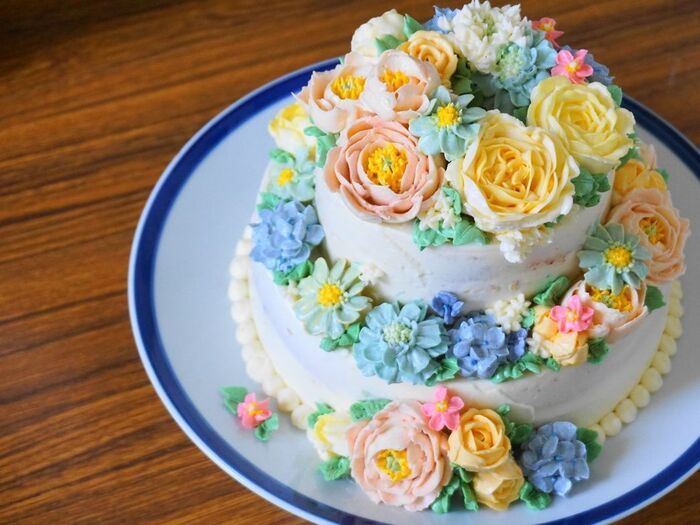 レビューを書いて送料無料フラワー完全オーダーケーキ 6・7・8号記念日 バタークリーム ウエディング パーティ 手作り ギフト プレゼント 無添加誕生日 結婚式 アニバーサリー クリスマスケーキ 結婚記念日 母の日 父の日 子供の日 出産祝い -ラ・シフォン。