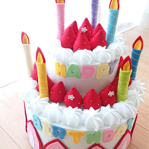 特集掲載 フェルトの二段ケーキ 二段ホールケーキ フェルトままごと お誕生日ケーキ ハーフバースデー おもちゃ・人形 May 's☆ケーキ&アイスshop通販 5551865Creema クリーマ。