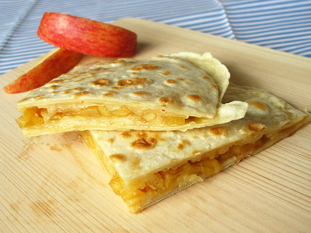 りんごとスパイシーチキンのケサディーヤ - りんごのレシピ りんご大学キッチン- りんご大学。