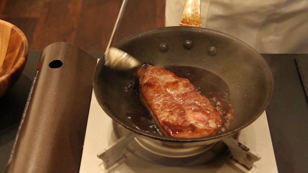 弱火で焼くという新常識!和牛ミスジステーキ。