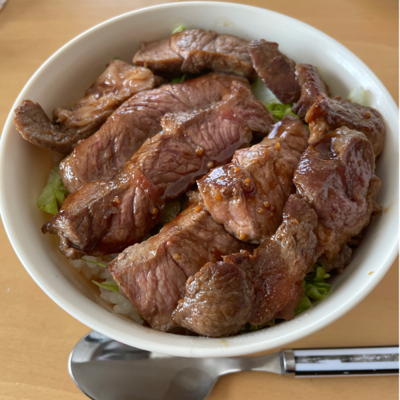 食べ応え十分! にんにく醤油だれのミスジステーキ丼。