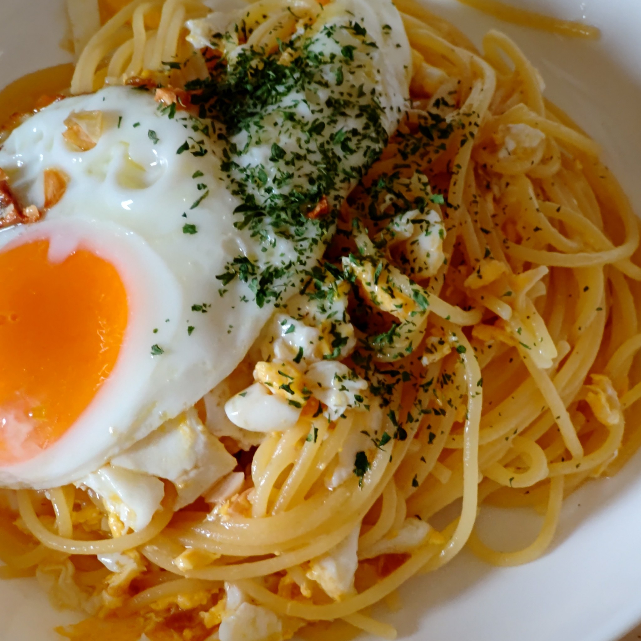 疲れた時はコレ! 貧乏人のパスタ やみつき目玉焼きパスタ。