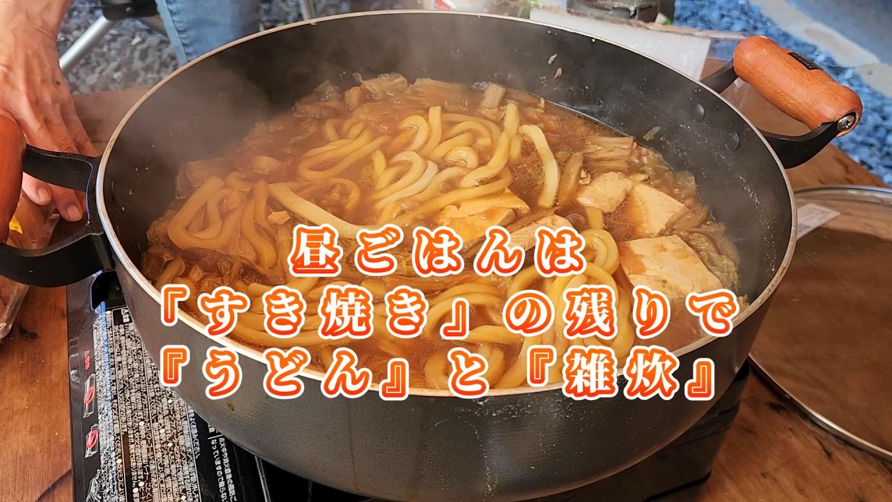 昼ごはんは「すき焼き」の残りで『うどん』と『雑炊』めっちゃ美味しかった。