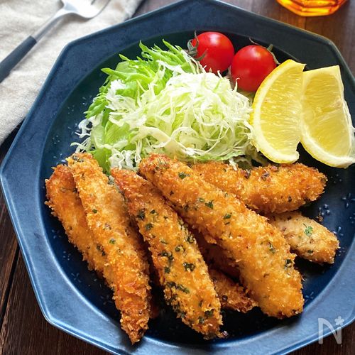 手軽に!ささみでチーズパン粉のこく旨スティックチキン。