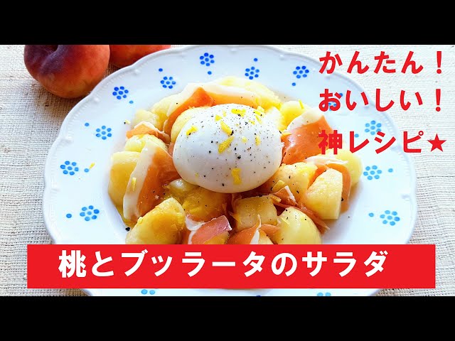 桃とブッラータのサラダ 神レシピ☆話題のチーズの超絶おいしい食べ方を試してみて! - YouTube。
