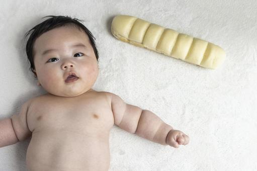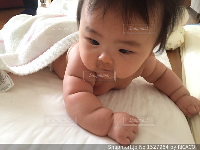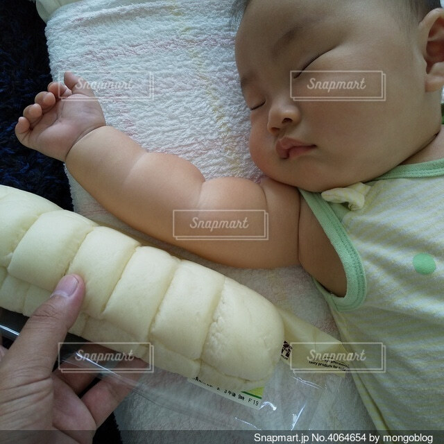 パンにそっくりな腕のムチムチした赤ちゃんの写真・画像素材-Snapmart スナップマート。