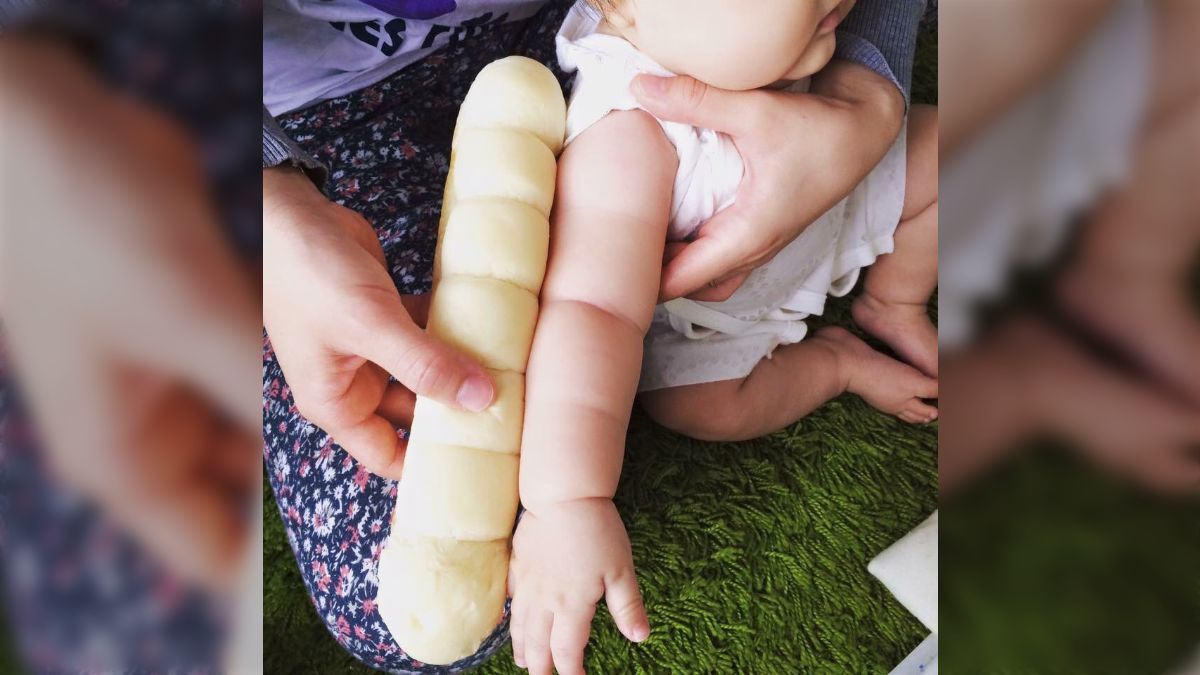 赤ちゃんの腕が「ちぎりパン」にそっくり 笑。