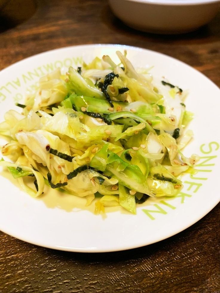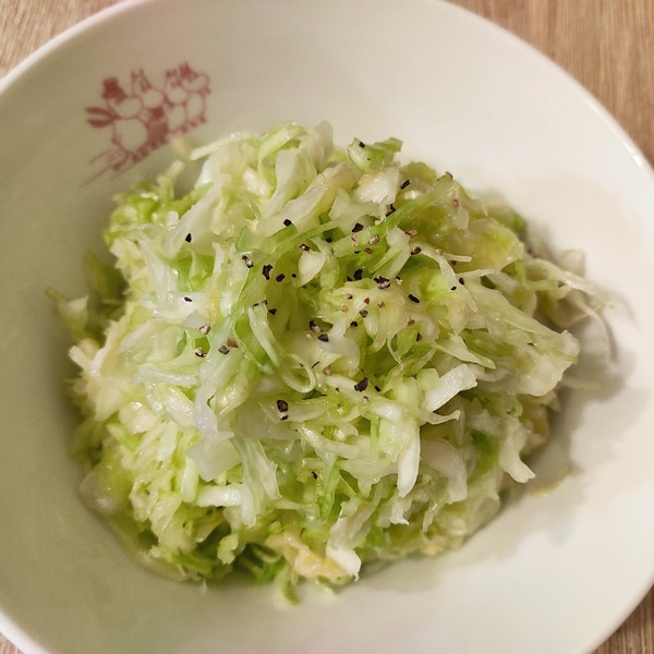 箸が止まらない 千切りキャベツのにんにくごま油和え。