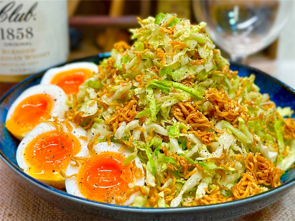 レシピ キャベツとチキンラーメンのやみつきサラダ - しにゃごはん blog。