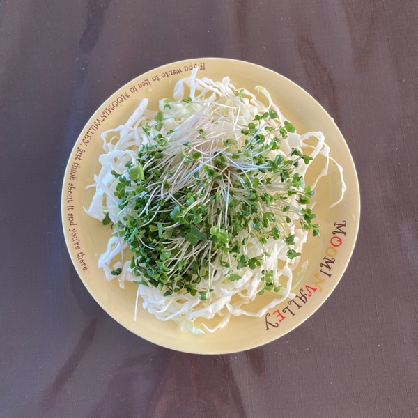 千切りキャベツとブロッコリースプラウトのサラダ。