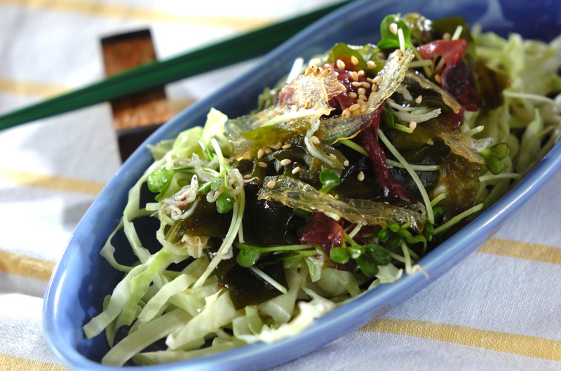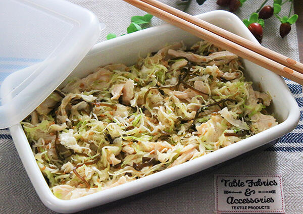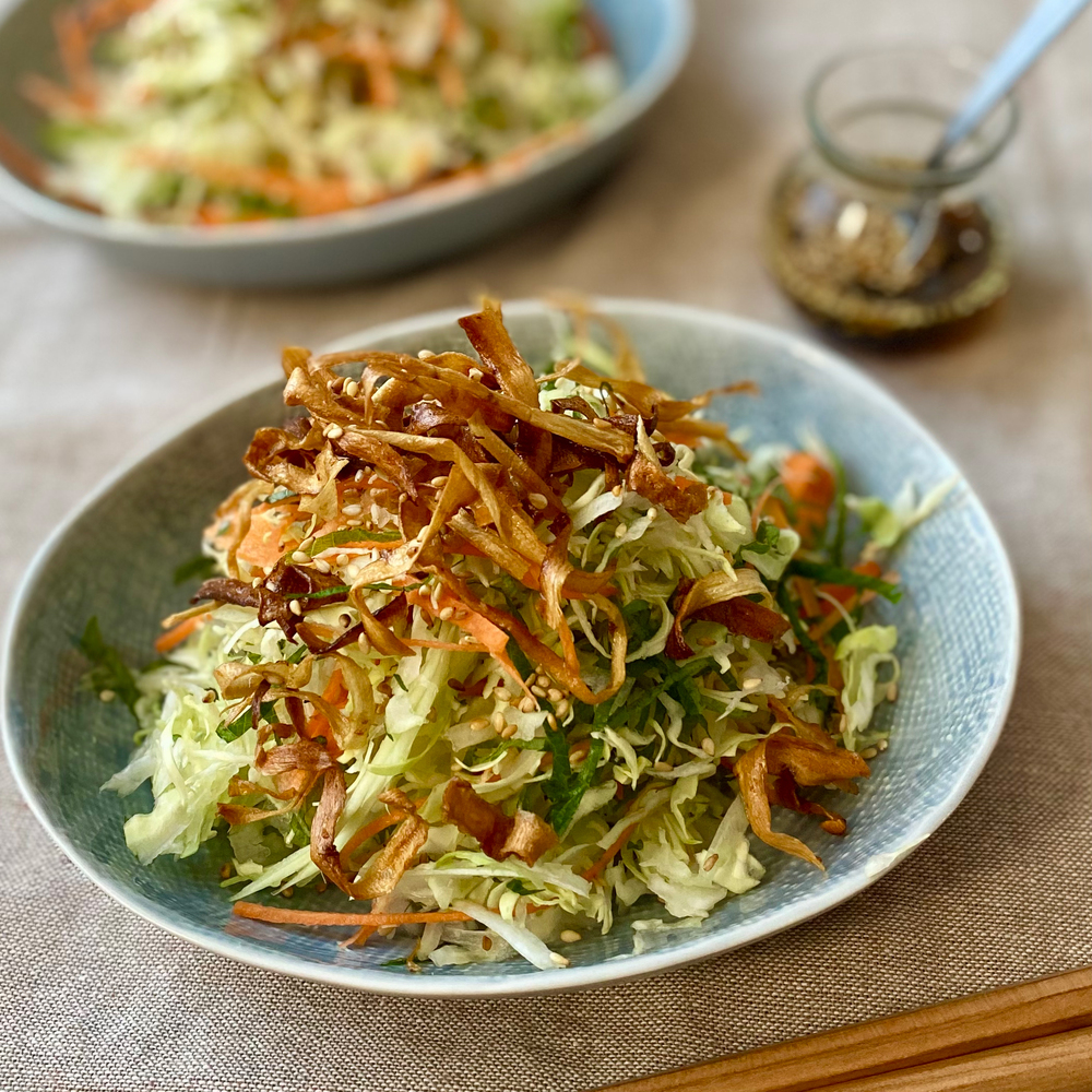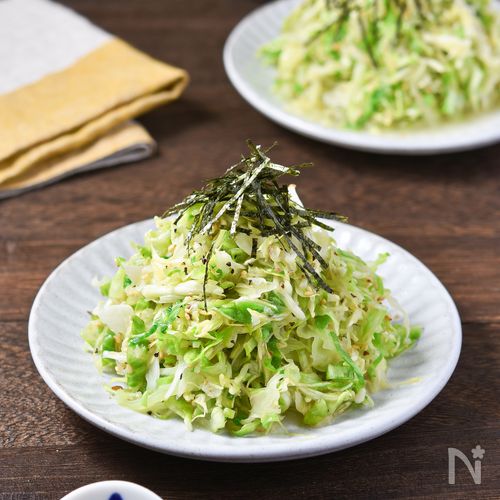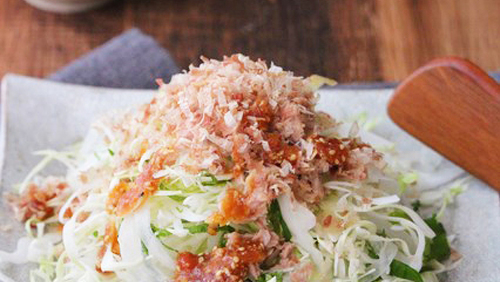 和風でさっぱり 千切りキャベツの梅おかかサラダ。