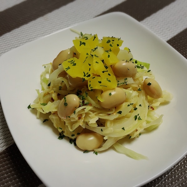 千切りキャベツとカリカリベーコンのうまみ醤油和え。