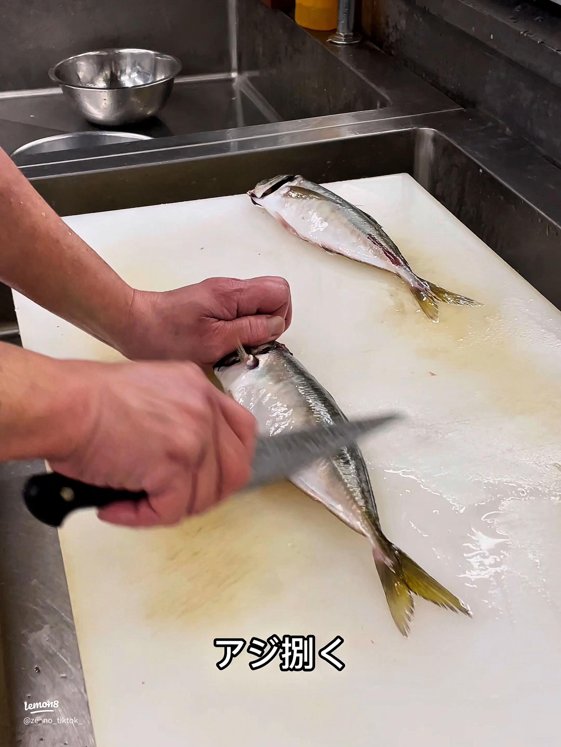 熟成アジの三枚おろし捌き方: プロの技を学ぶ。