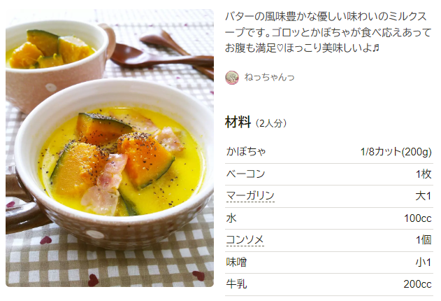 カボチャポタージュ料理研究家リュウジのバズレシピさんのレシピ書き起こしTubeRecipe。
