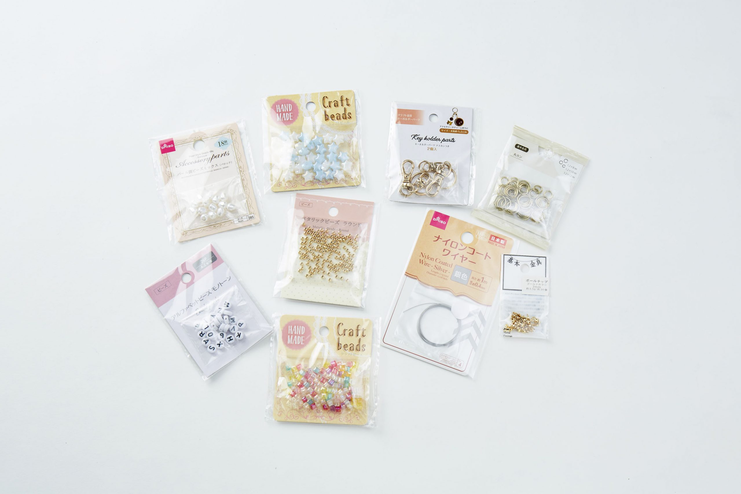 100均ダイソー・セリアにも「アルファベットビーズ」で推しの名前入りストラップ・キーホルダーを作ろう。