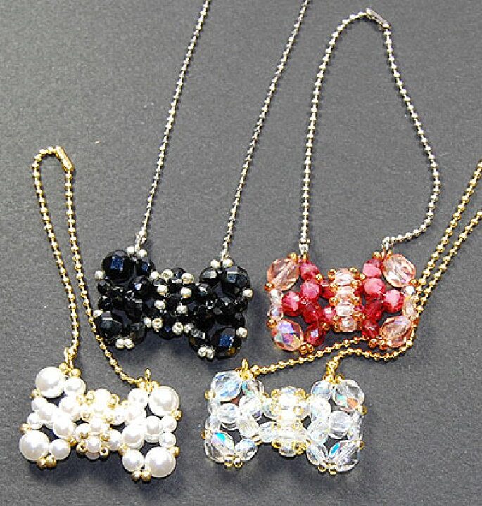 楽天市場 ビーズレシピ ビーズ作り方ラブリーリボン・ネックレス&マスコットチャーム NO.112 : ビーズショップ・ストロビーズ。