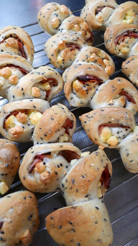 パンレシピ 漆黒の黒胡麻ベーコンエピ。