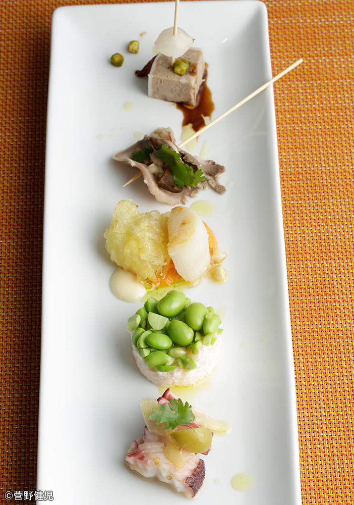 カラフルなスペイン料理の前菜盛り合わせ=大阪・本町「TEN TO SEN」 - 船場経済新聞。