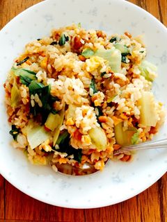 納豆レタスチャーハン 塩こうじでパラパラ。