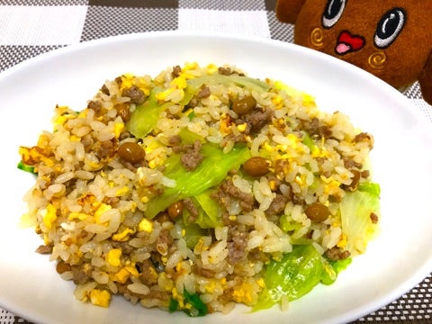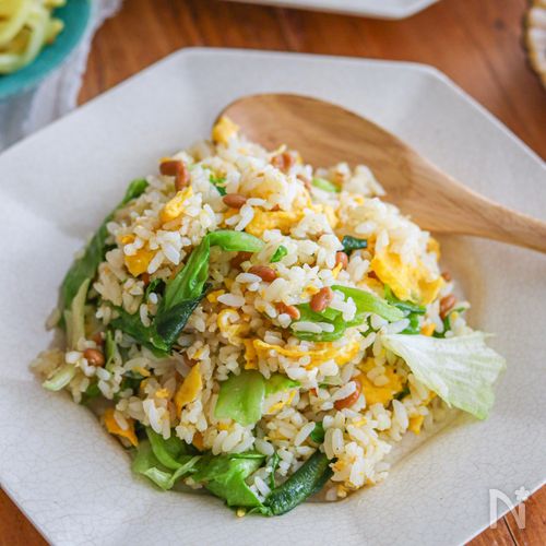 お昼ごはんにぴったり♪ 納豆レタスチャーハン。