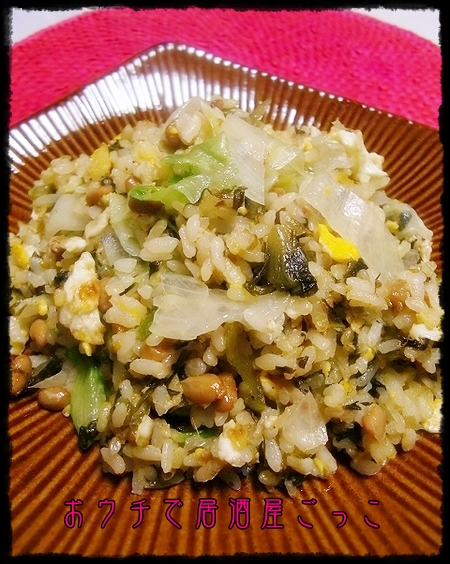 金のつぶ納豆☆納豆&高菜のレタスチャーハン☆おウチで居酒屋ごっこ。