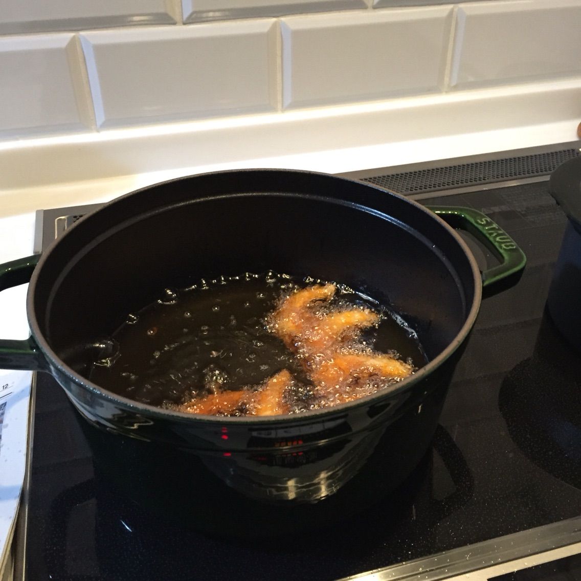 ストウブで揚げ物🍗🍳, 蓋して揚げるから油飛ばないし, シーズニングにもなるし一石二鳥なんです👌,いつも炊飯してる鍋で揚げ物もしてる🙂↕️, 動画で使用しているのはワナベL カンパーニュです。, ミナペルホネンコラボのストウブも 欲しいな ,vlog暮らしのvlogストウブ好きなものに囲まれた暮らし北欧食器こどものいる暮らし。