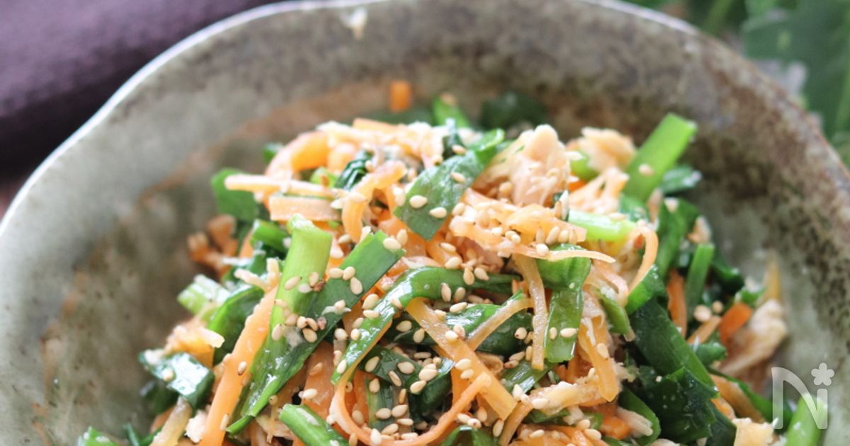 食べだしたら止まらない! ニラとツナのごまマヨ和え。