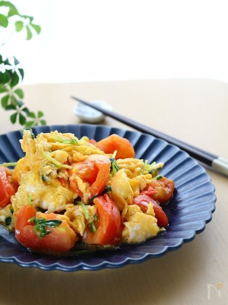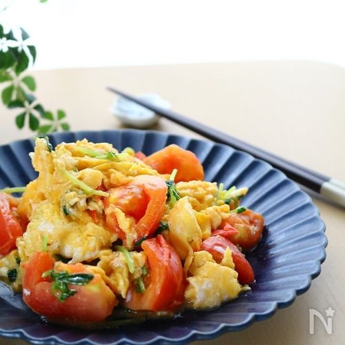 ご飯のおかずに!トマたまふんわり炒め コンソメ風味。