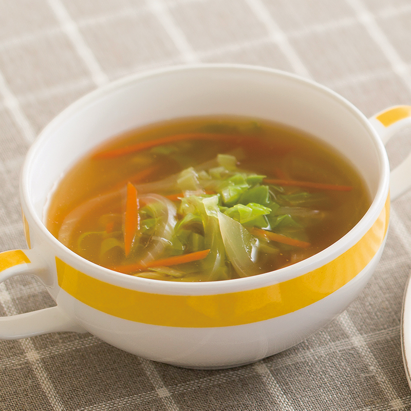 大量消費☆キャベツの細切りとベーコンのコンソメ・おかずスープ。