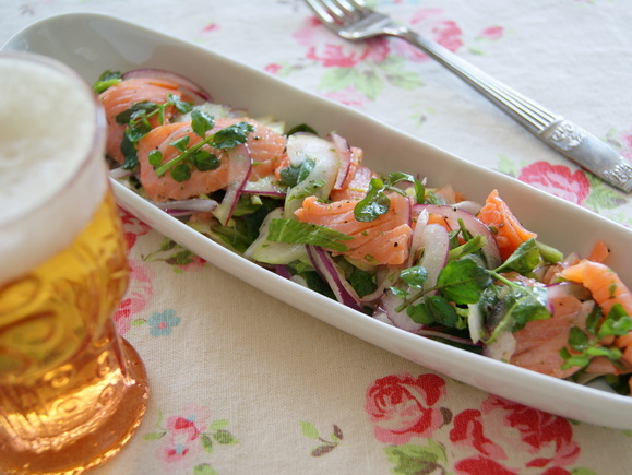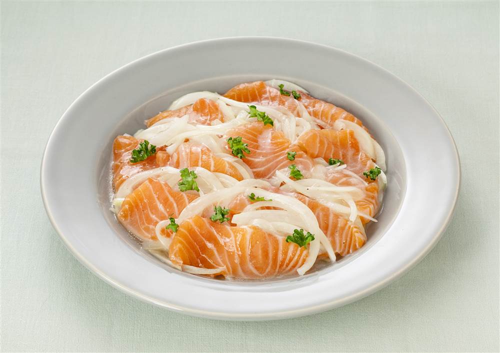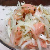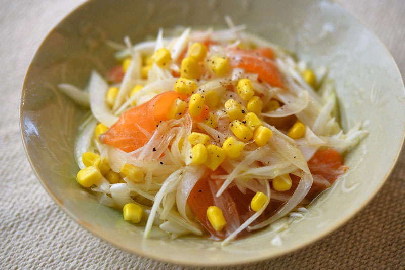 サーモンと新玉ねぎのマリネサラダ。
