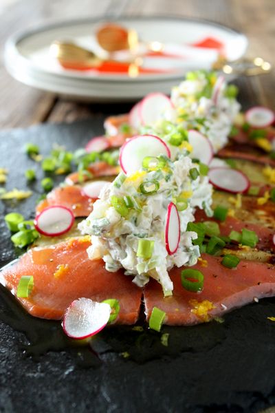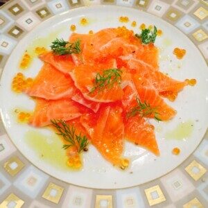 簡単おしゃれ!華やかスモークサーモンのカルパッチョ 副菜。