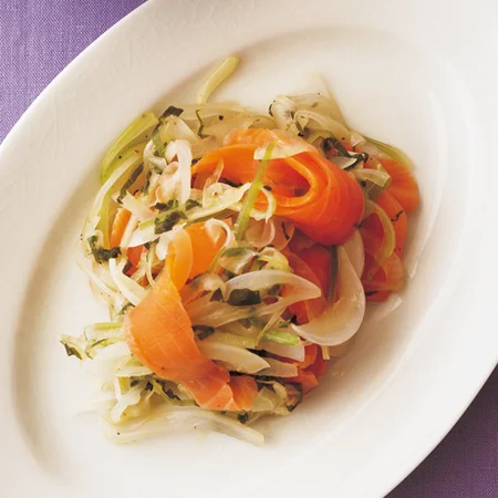 スモークサーモンと大根のゆずマリネ。