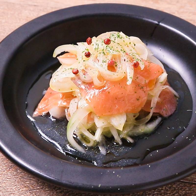 サーモンと新玉ねぎのカルパッチョ。