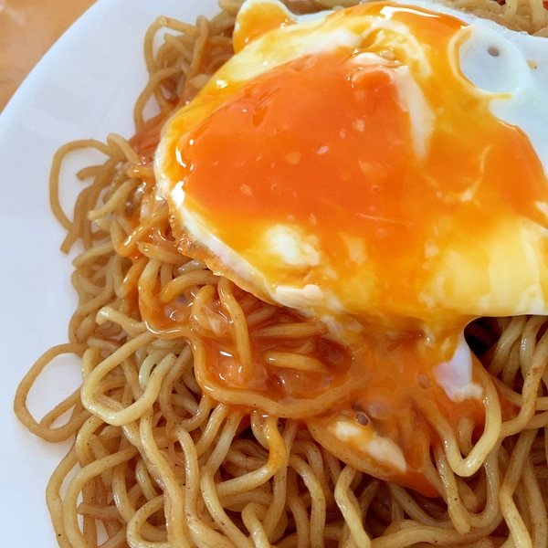 トロうま*半熟卵のせカレー焼きそば。
