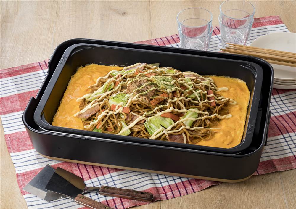 ホットプレートで!ふわふわたまごのオムそば。