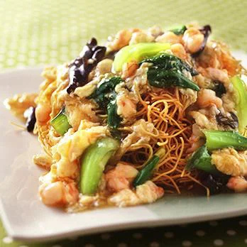 ふわふわ卵のふかひれあんかけ焼きそば。
