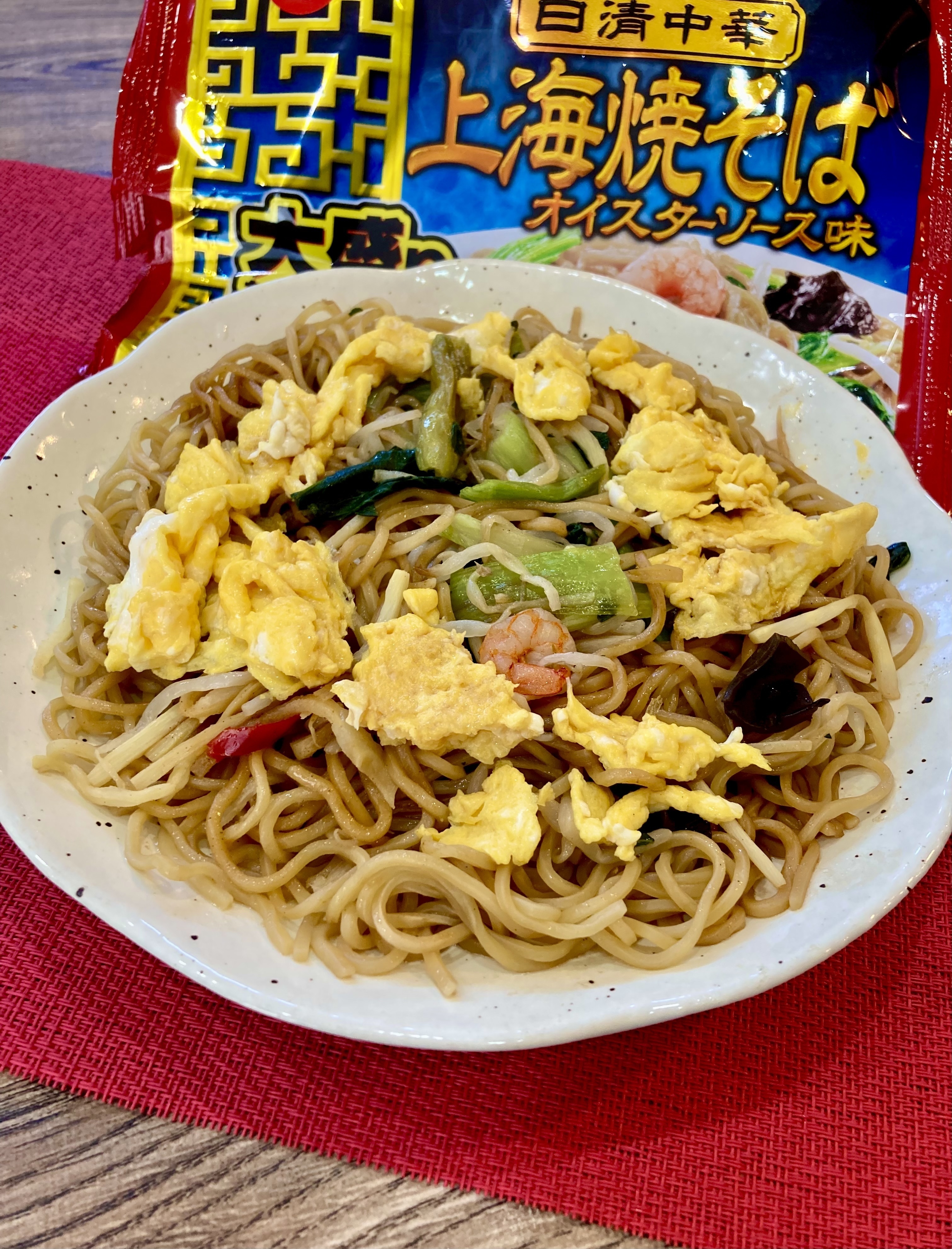 黒酢香る卵入り上海やきそば。