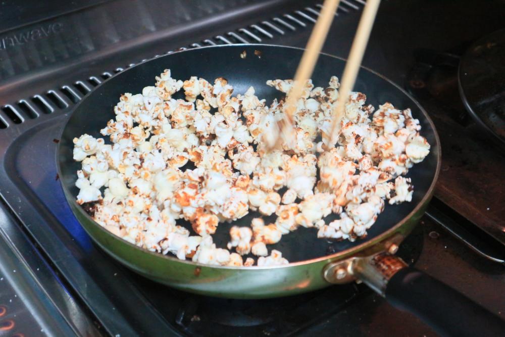 アウトドア BBQ での子供を喜ばせる一品。シングルバーナーで作るフライパン型ポップコーンがいい! - Cross Mode Life。