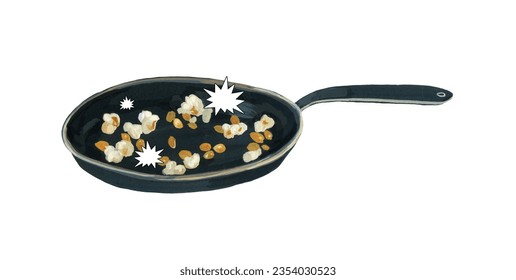 白い背景にフライパンとポップコーンのポップと音のグワーイラスト。」のイラスト素材 2354030523Shutterstock。