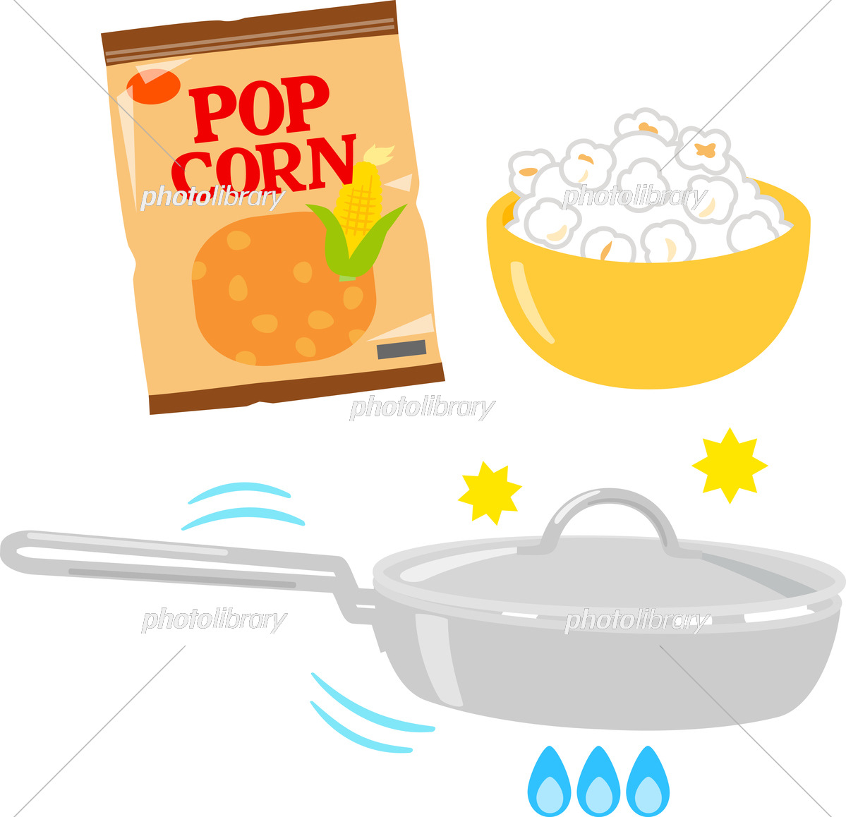 ポップコーンをフライパンで作るイラストのイラスト素材78333491- PIXTA。