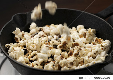 フライパンで焼いてポップコーンを作るの写真素材96053589- PIXTA。
