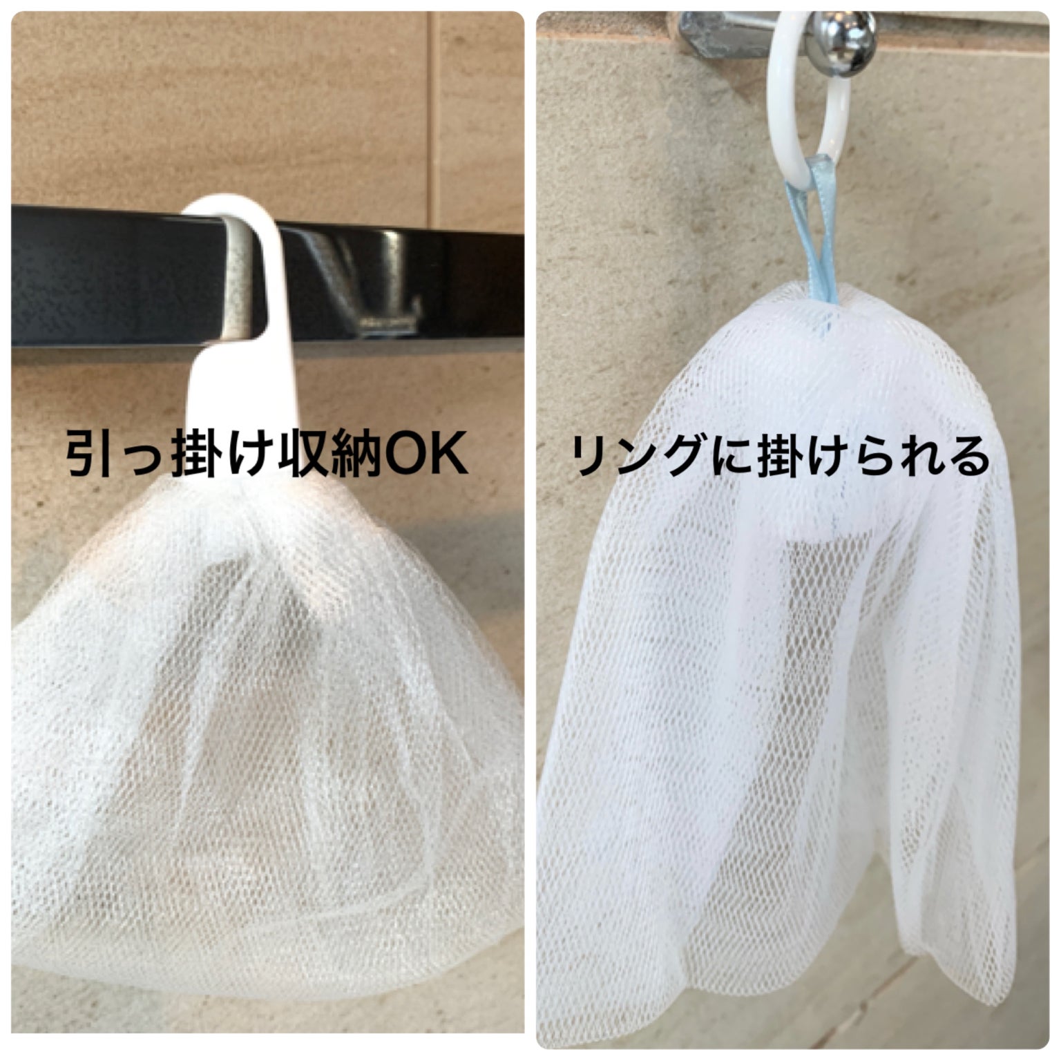 セリアで石鹸を入れっぱなしで収納・吊り干し可能な『洗顔石鹸専用の泡立てネット』見つけました!武藤明美の片づけコツコツ!~仕組みを変えて片づく家にするブログ~整理収納サポート。