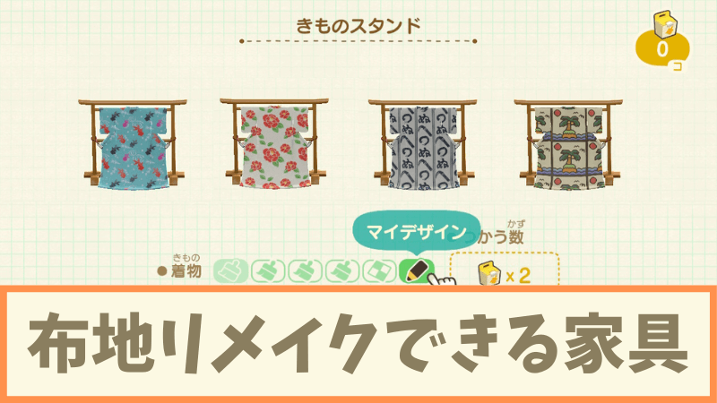 パターン・マイデザイン 布地をリメイクできる家具一覧あつ森いかたこクエスト。