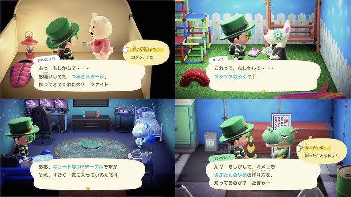 あつ森 キャンプサイトに呼んだ れんにゅうに「つみきスツール」をあげた キッズに「ゴシックなふく」をあげた スピカの家に行ってみた ゴンザレスに「ざぶとんのやま」のレシピをもらった。