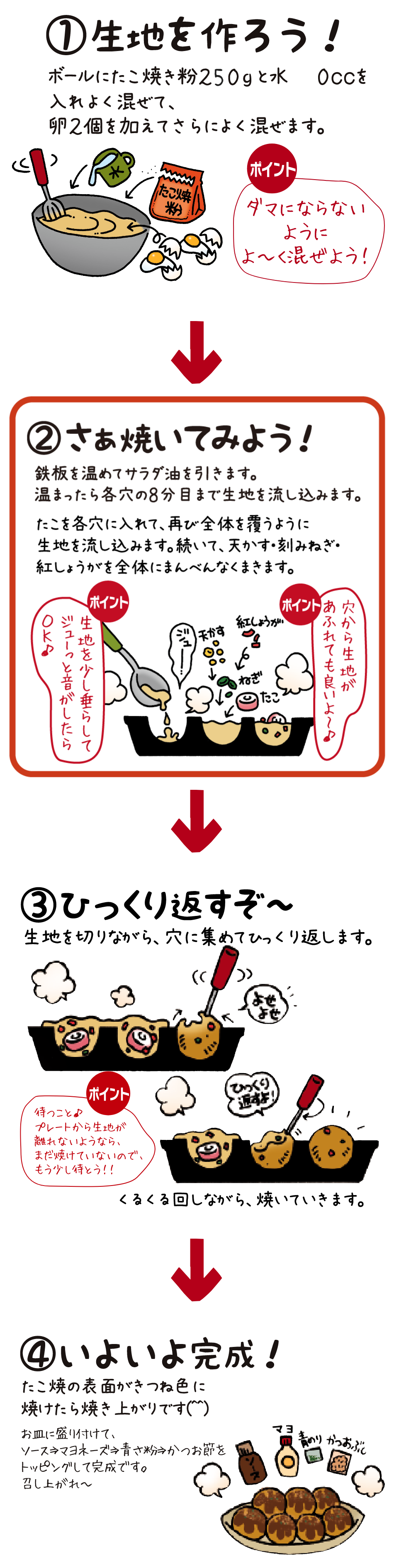 2 たこ焼きが簡単に焼けるようになります!, いじくり注意!いじらないのがコツ。